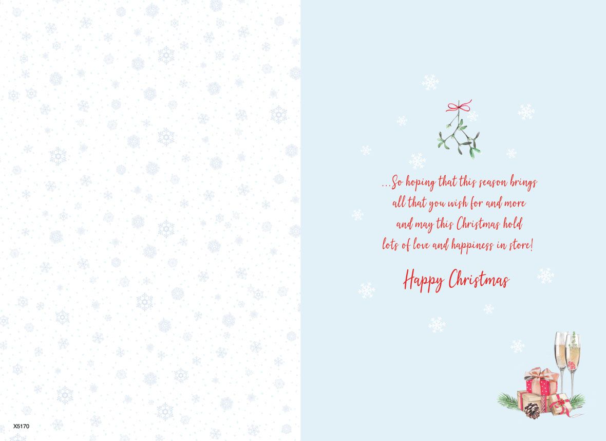 Verse reads: Front - You make Christmas so special simply by being you, bringing joy and festive cheer with everything you do! Inside - ...So hoping that this season brings all that you wish for and more and may this Christmas hold lots of love and happiness in store! Happy Christmas