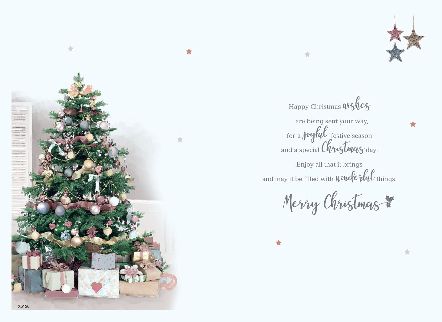 Verse reads: Happy Christmas wishes are being sent your way, for a joyful festive season and a special Christmas day. Enjoy all that it brings and may it be filled with wonderful things. Merry Christmas