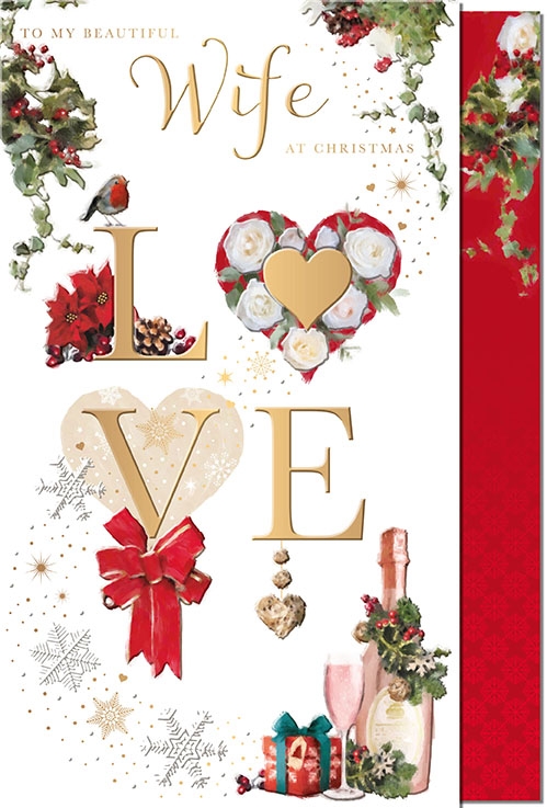 Verse reads: You are quite simply everything that I could ever need, the most amazing Wife - I love you very much indeed. You're the very heart of Christmas - You put the magic in our home, A cosy, loving feeling in a way that's all your own. So this comes with a special thank you for all the things you do, Wrapped up in Christmas wishes sent from my heart straight to you. With all my love at Christmas and always