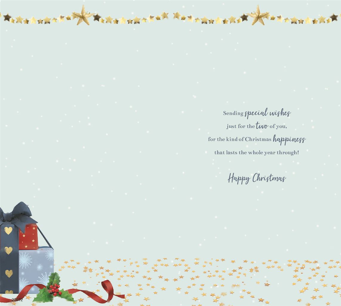 Verse: Sending special wishes just for the two of you, for the kind of Christmas happiness that lasts the whole year through! Happy Christmas