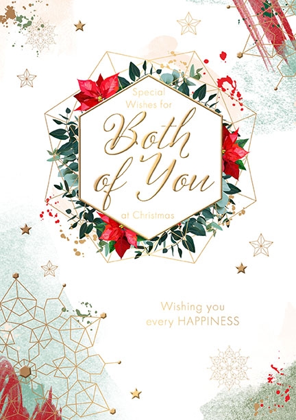 Verse reads: Front - Wishing you every happiness Inside - You're both so very special and this greeting brings your way, A wish for joy and happiness long after Christmas Day! Merry Christmas to you both