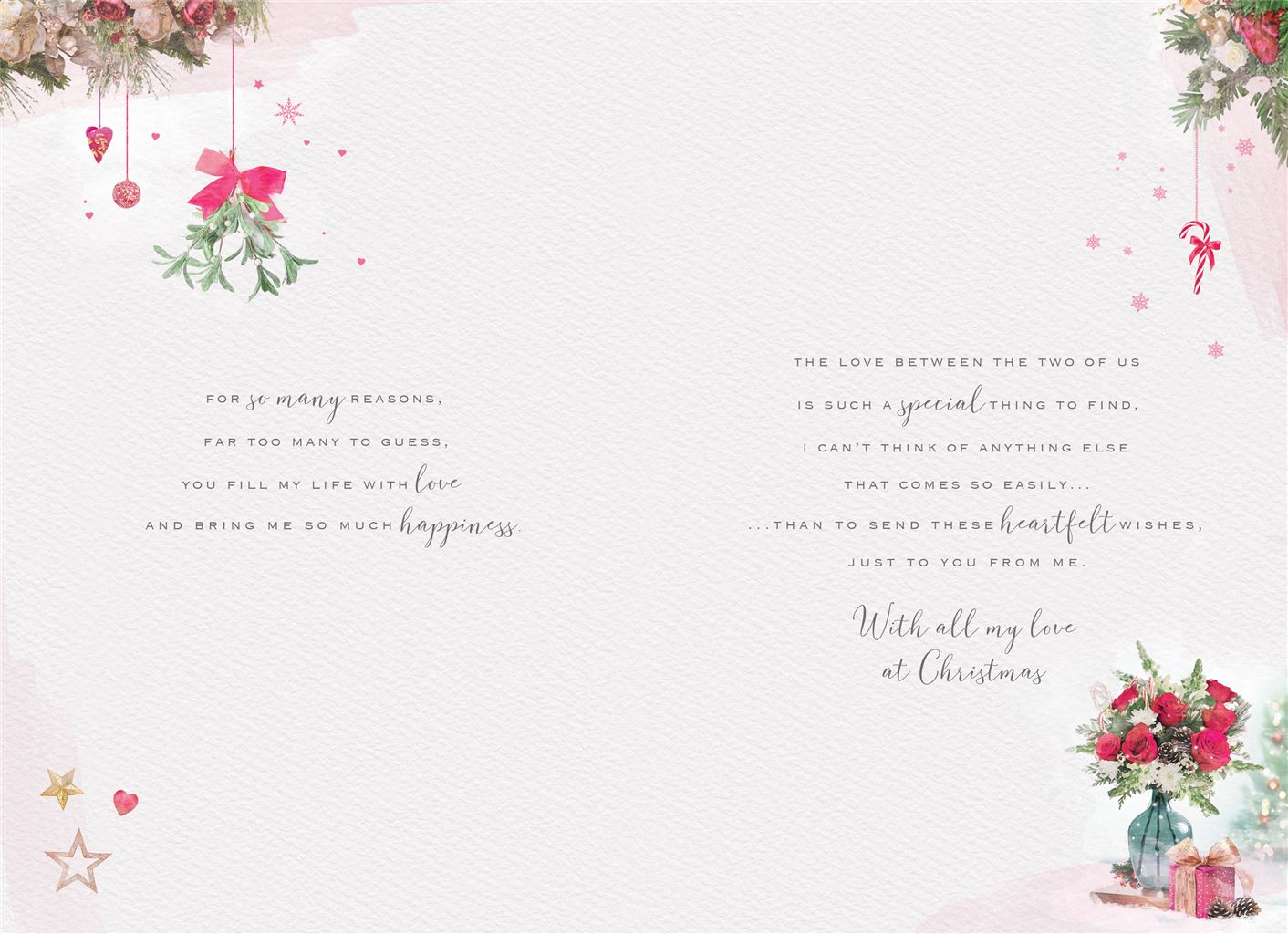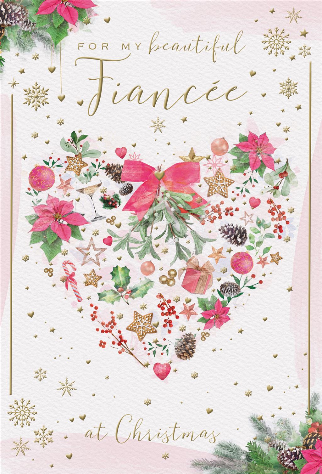 Fiancee - Luxury Christmas Card - Heart - Flowers and Gifts