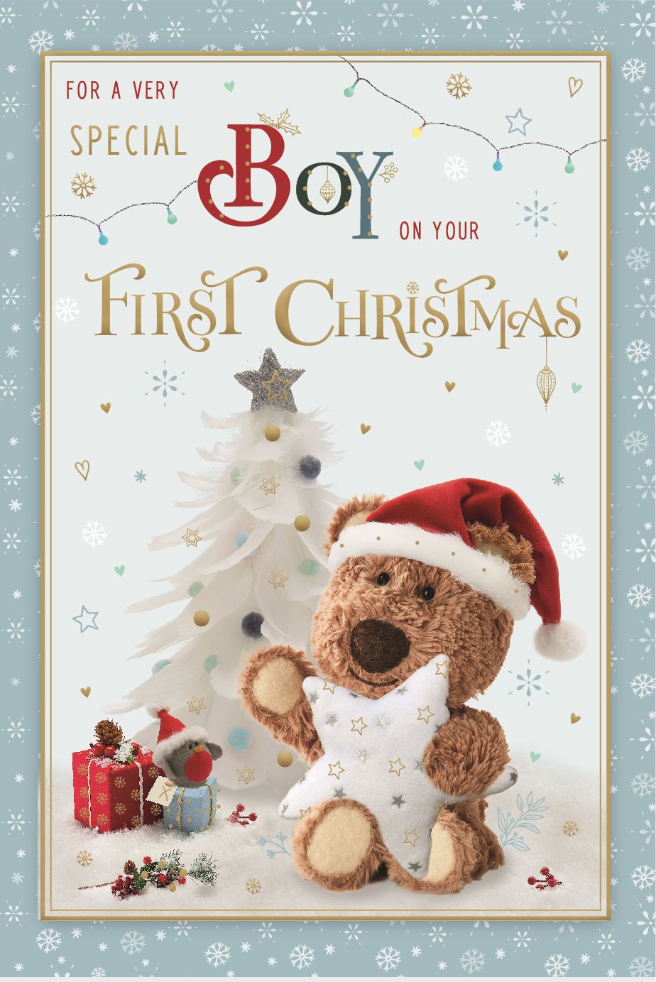 Verse: You're an extra special little boy and you're wished all the lovely things a very Happy first Christmas brings. With love at Christmas