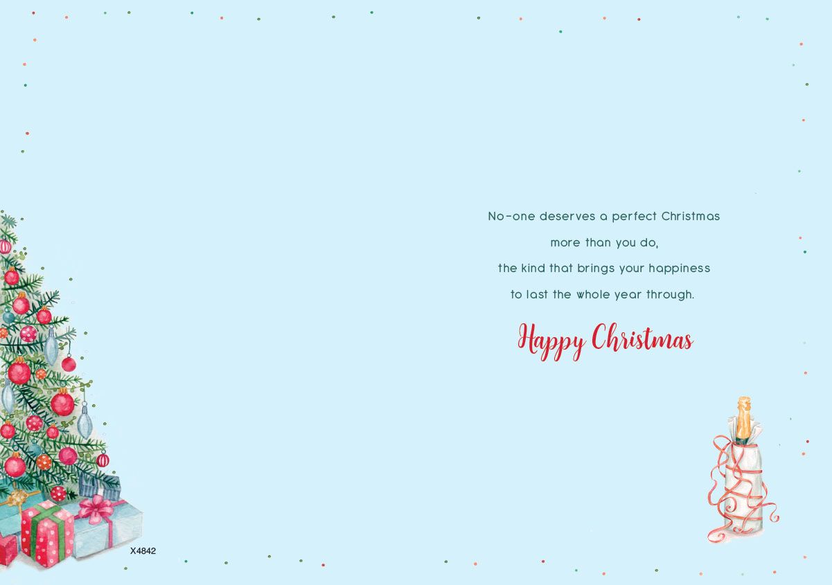 Verse reads: No-one deserves a perfect Christmas more than you do, the kind that brings you happiness to last the whole year through. Happy Christmas