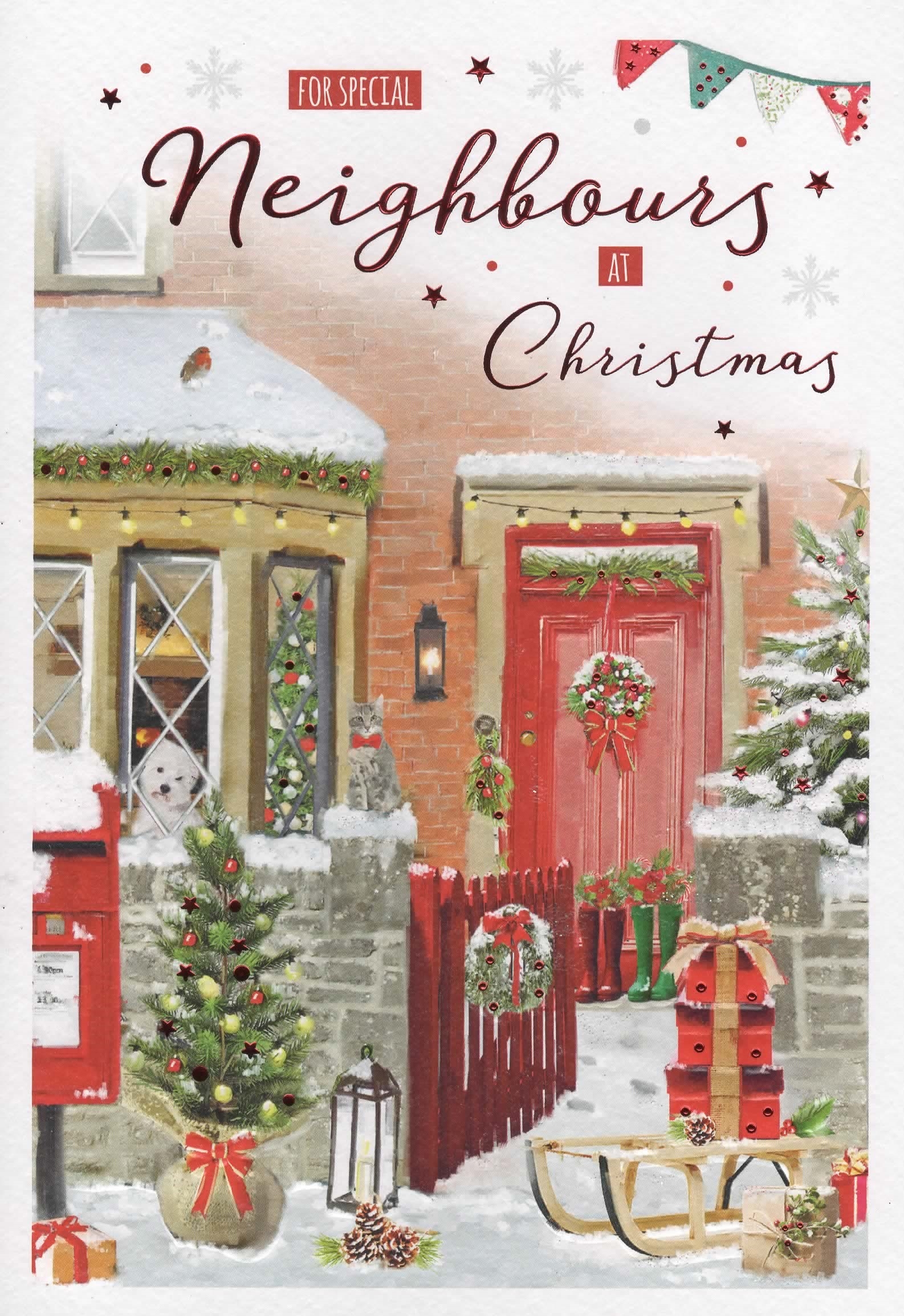 Verse reads: Hope this Christmas season brings you all you're hoping for, because you're wonderful neighbours who deserve all that and more. Happy Christmas