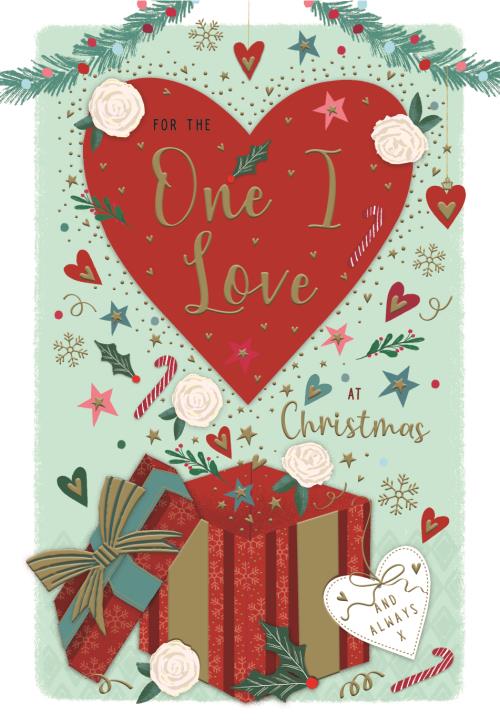 One I Love Christmas Card - Luxury - Big Red Heart - Large Present