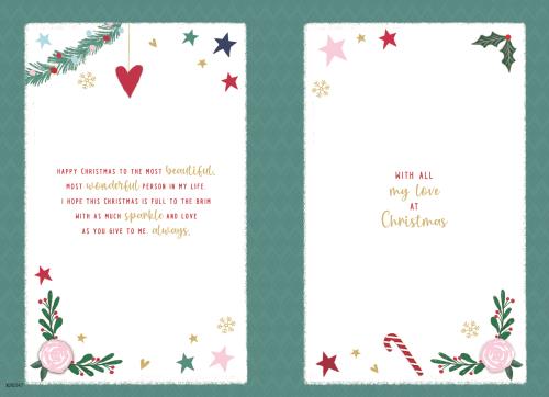 Verse: Happy Christmas to the most beautiful most wonderful person in my life. I hope this Christmas is full to the brim with as much sparkle and love as you give to me, always