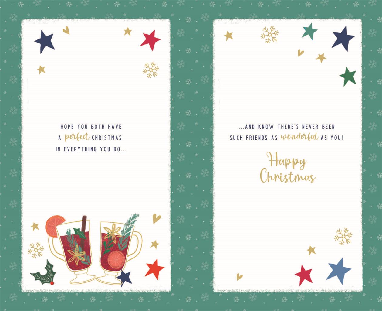 Verse: Hope you both have a perfect Christmas in everything you do... and know there's never been such friends as wonderful as you! Happy Christmas