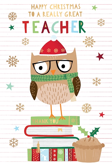 Teacher - Christmas - Wise Owl on Books with Mince Pie