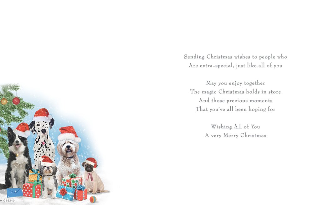 Verse reads: Sending Christmas wishes to people who are extra-special, just like all of you May you enjoy together The magic Christmas holds in store And those precious moments That you've all been hoping for Wishing All of You A very Merry Christmas