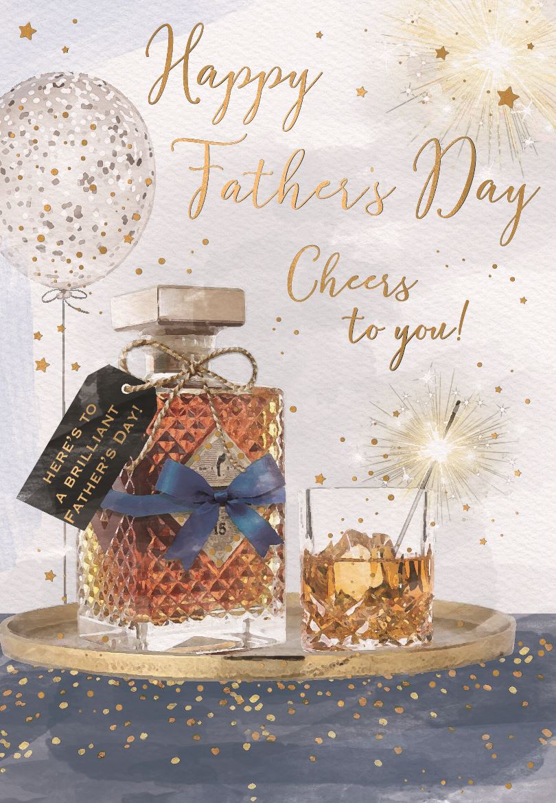Happy Father’s Day - Open Card - Whiskey Decanter & Glass - Cheers