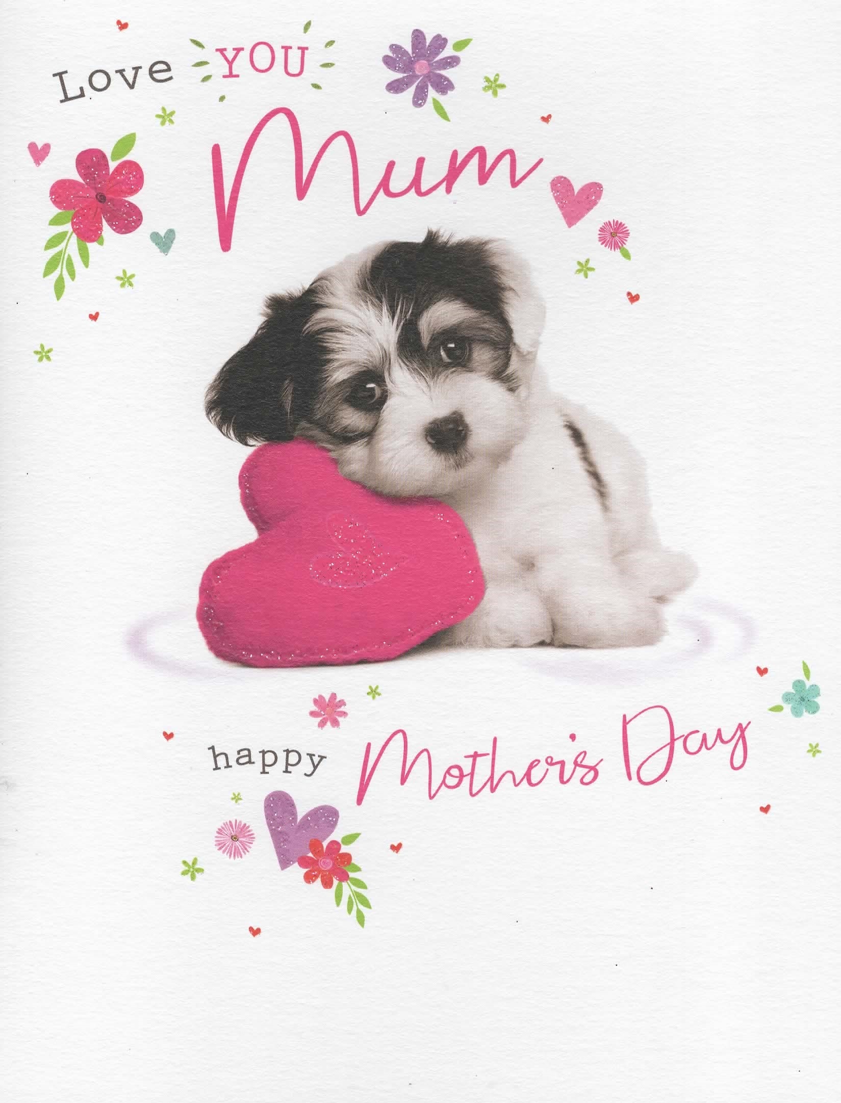 Mother's Day - Love You Mum - Little Dog with Pink Heart