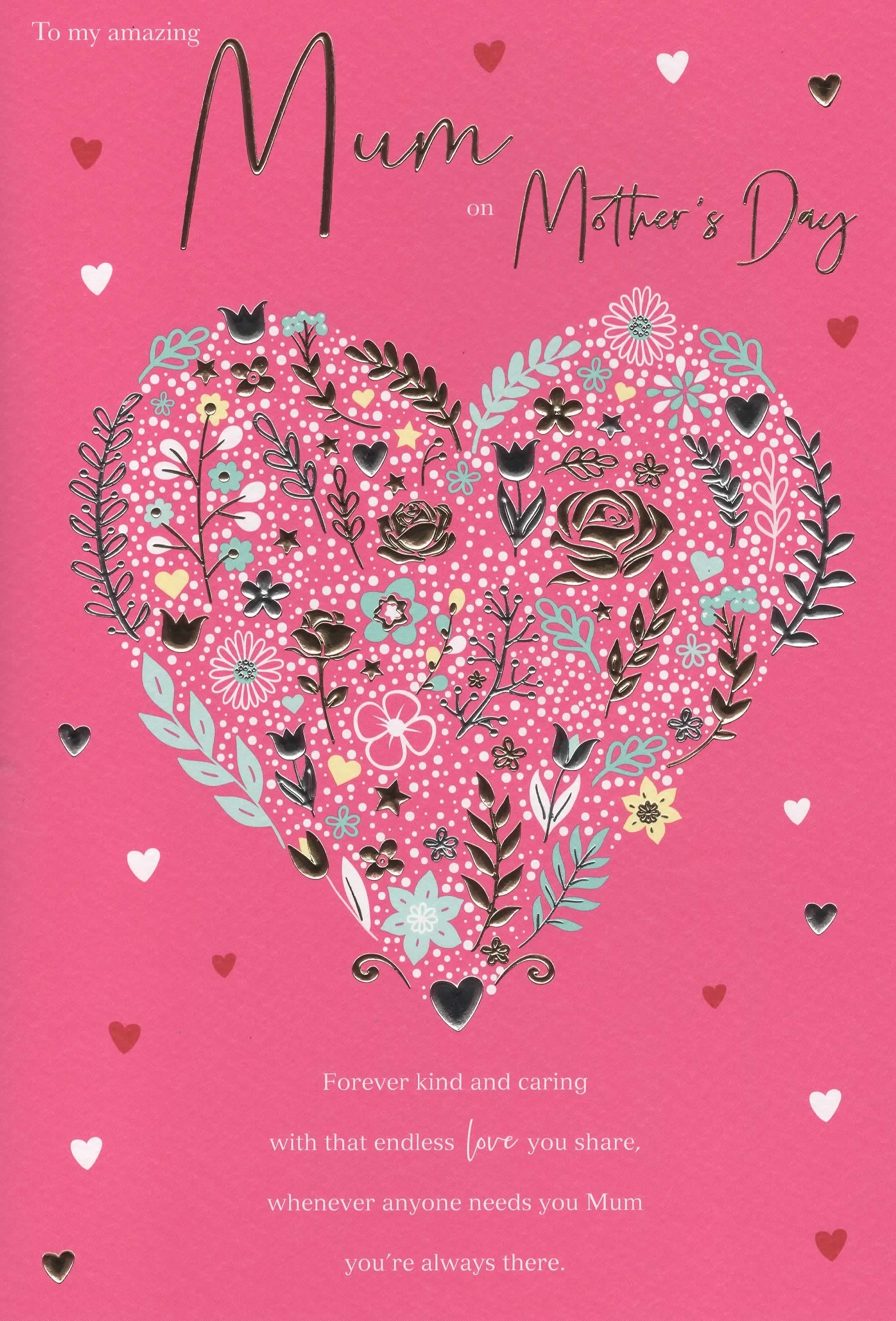 Verse reads: Front - Forever kind and caring with that endless love you share, whenever anyone needs you Mum you're always there. Inside - For you deserve to know just how loved you really are, for when it comes to wonderful Mums you're the very best by far. Happy Mother's Day