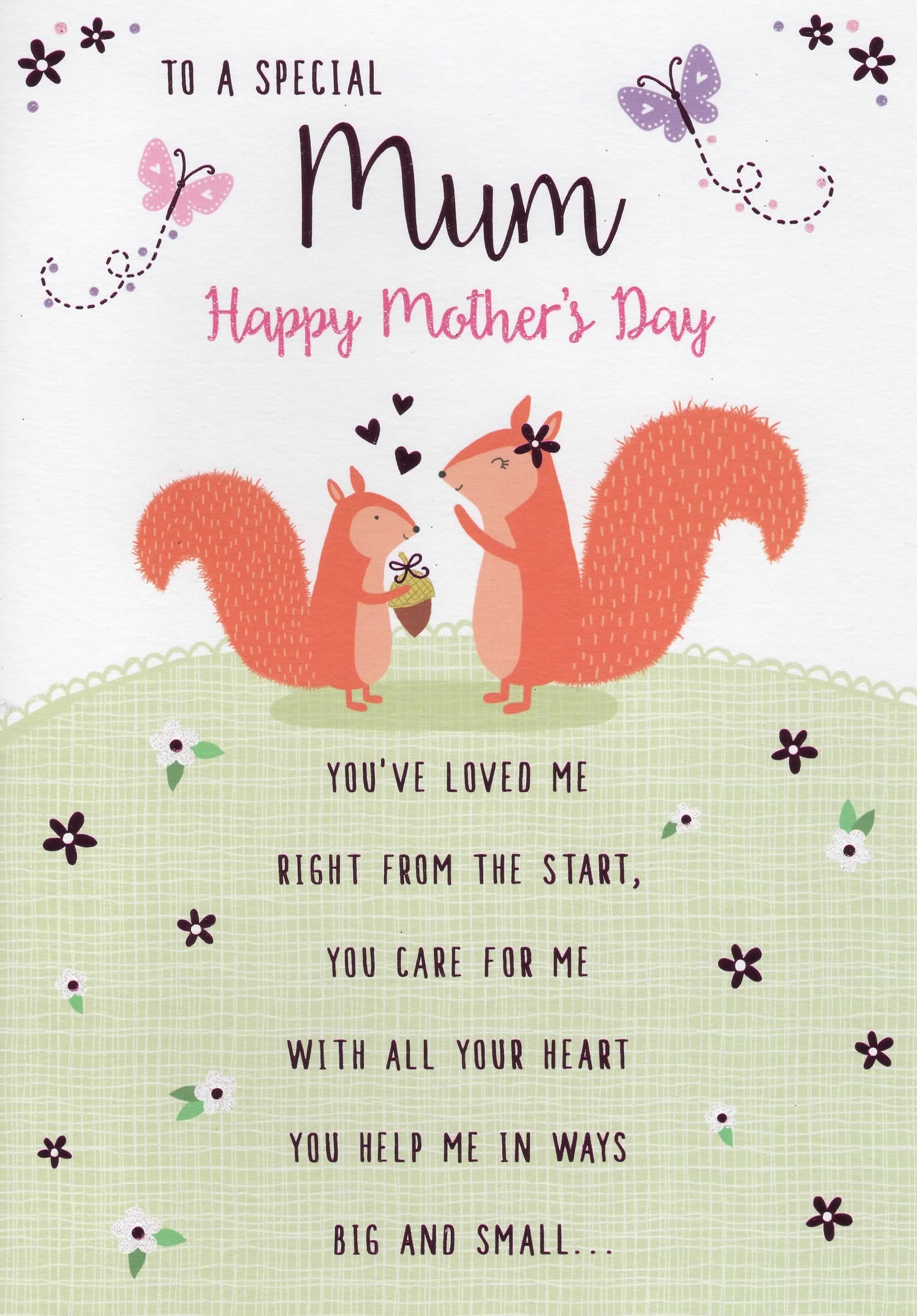 Verse reads: Front - You've loved me right from the start, you care for me with all your heart You help me in ways big and small... Inside - ... and you're my bestest friend of all! Thank you all everything you do, I'm so proud to have a Mum like you Happy Mother's Day to a wonderful Mum With lots of love on your special day