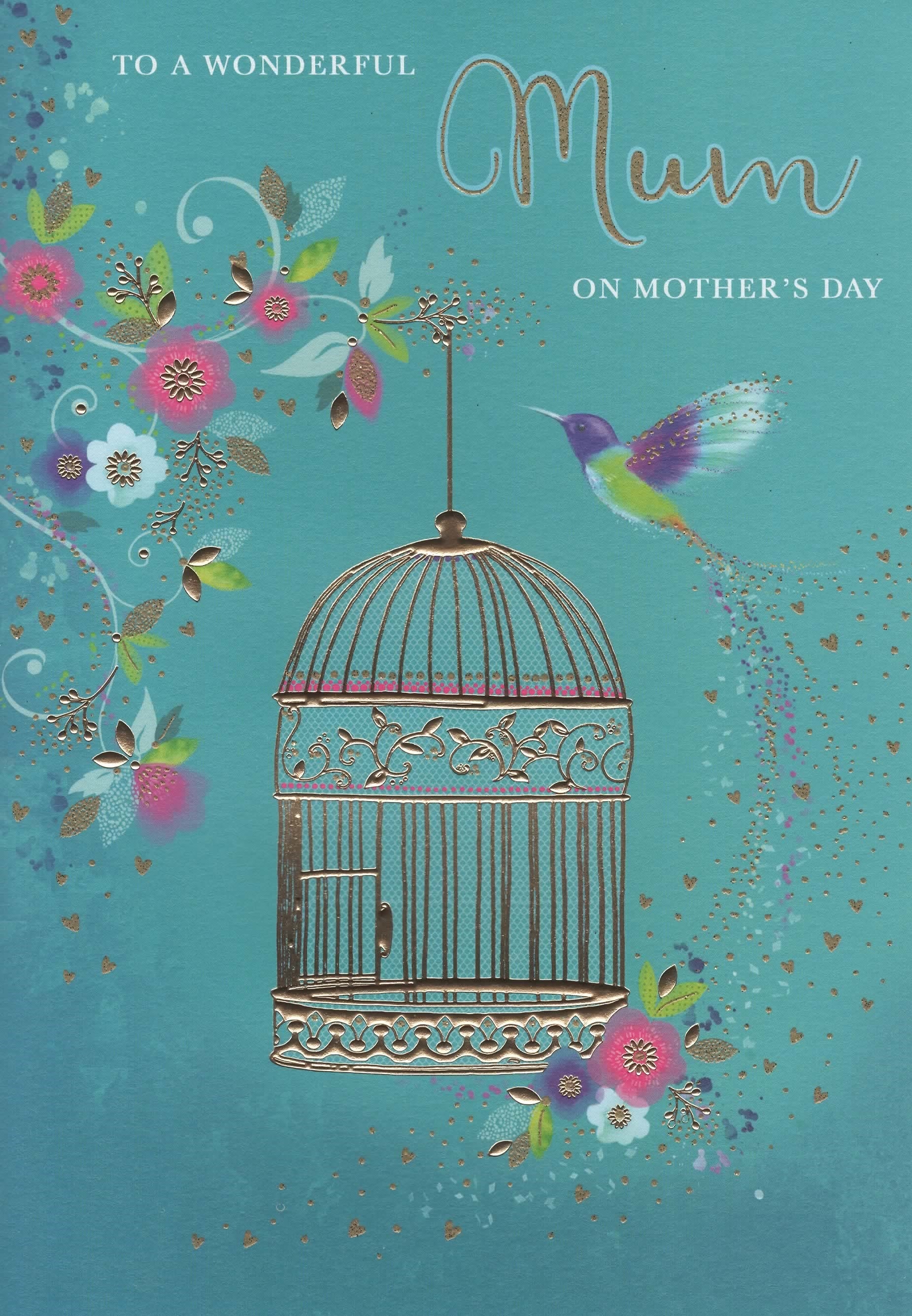 Mother's Day - Mum - Teal Humming Bird and Cage