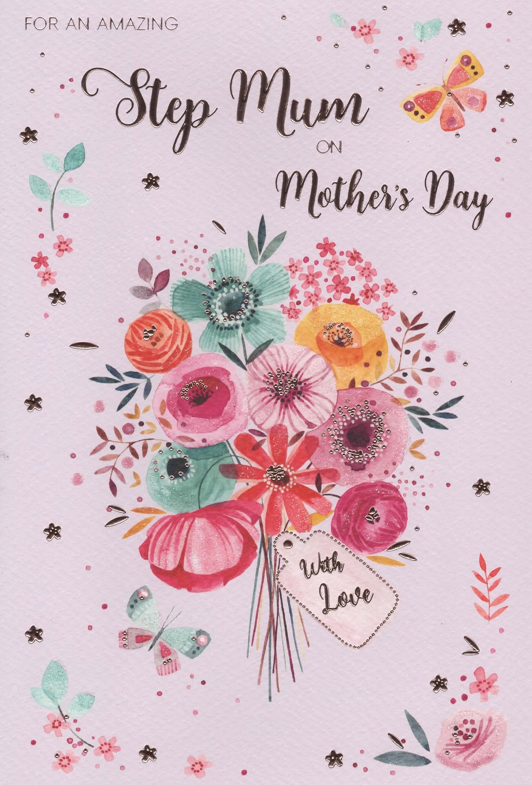 Verse reads: You're everything a Step Mum should be and so very much more, that's why you're wished a perfect day bringing all you're hoping for. You've always been there unconditionally in every way, so know that you're loved much more than words can say. With love on Mother's Day