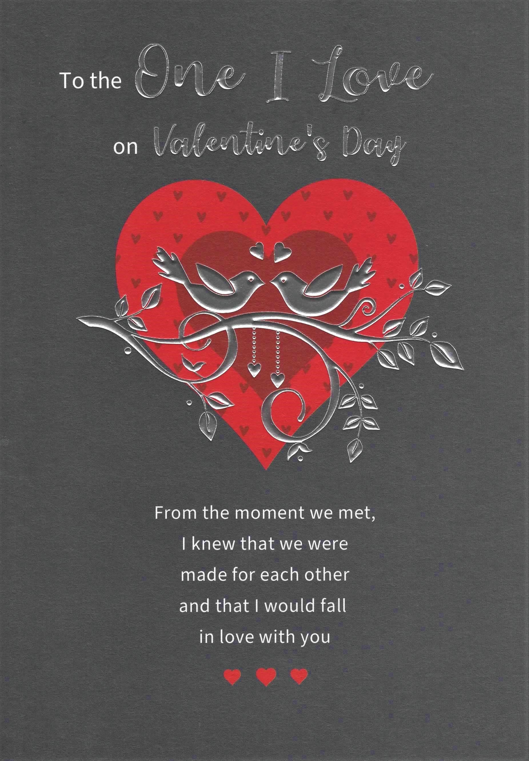 Verse reads: Front - From the moment that we met, I knew that we were made for each other and that I would fall in love with you Inside - Happy Valentine's Day to the One I Love, always