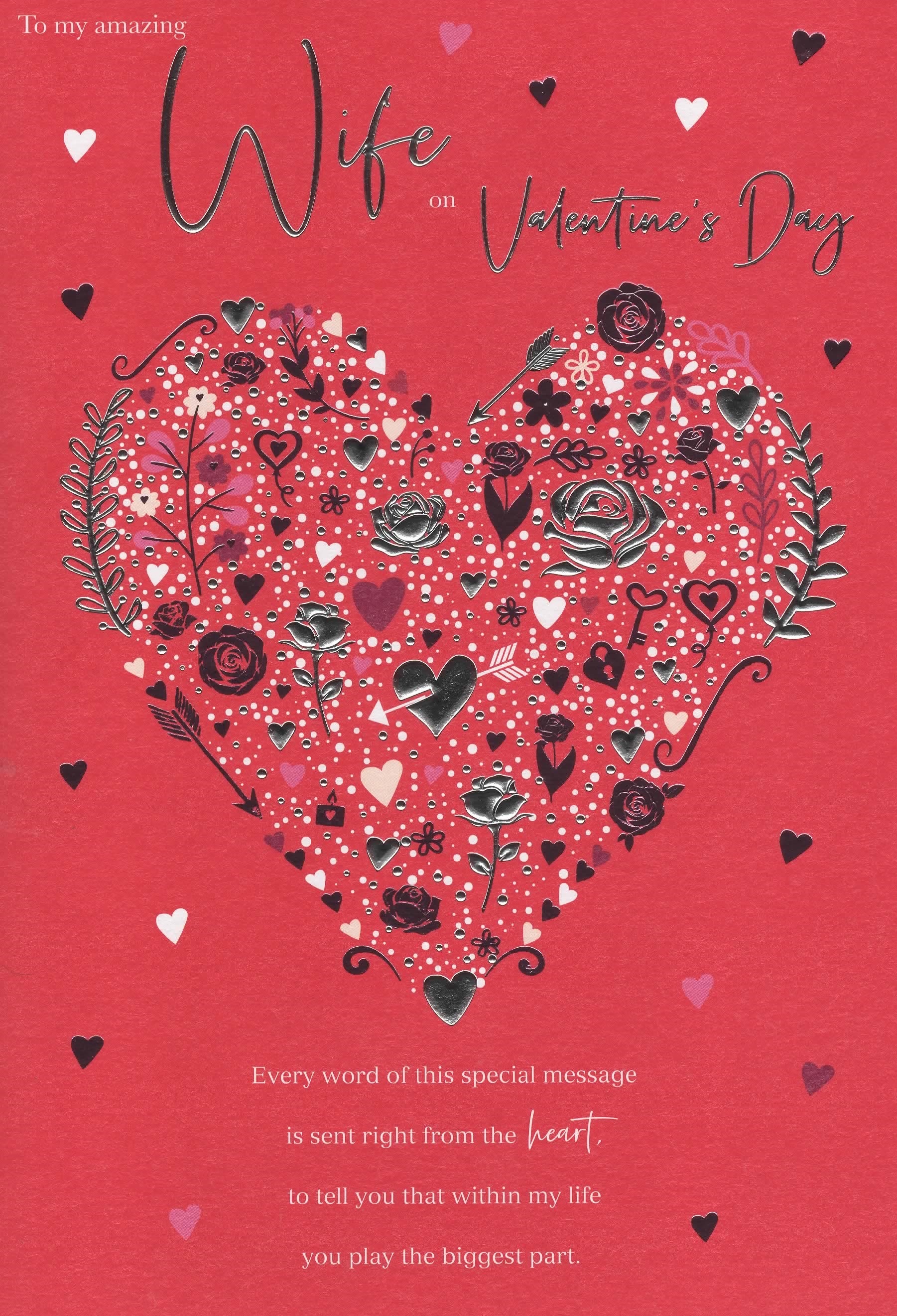 Verse reads: Front - Every word of this special message is sent right from the heart, to tell you that within my life you play the biggest part. Inside - I must have made a wish one day for my dreams to come true, everything I could ever want, my beautiful Wife, it's you! Happy Valentine's Day